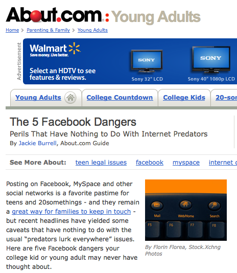 ‘s article, The 5 Facebook Dangers, in her Young Adults About.com column, provides an important list of ways that poor choices in postings can affect their futures in school, jobs, and court prosecutions.