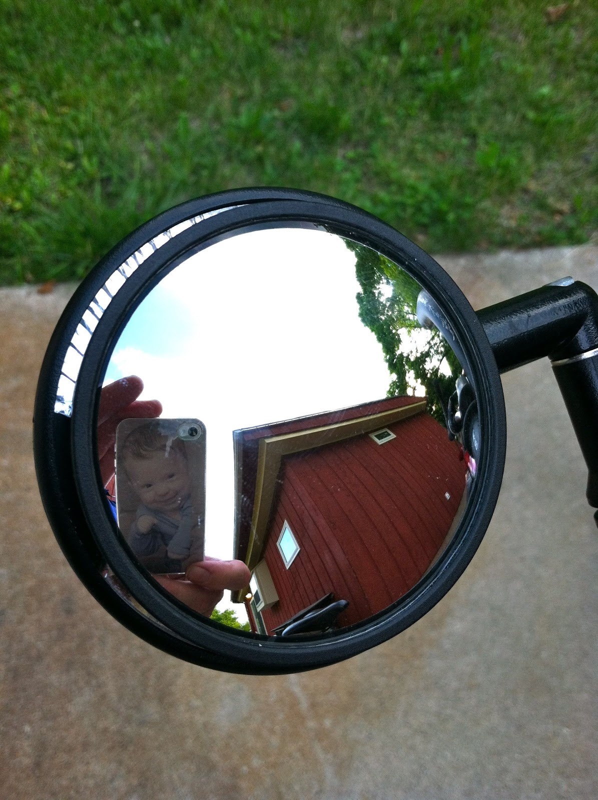 The other day I broke my mirror while putting my bike in the back of my truck. It costs $20 to replace so I went to a nearby auto parts shop and purchased a $3 convex stick-on mirror. What a find!!