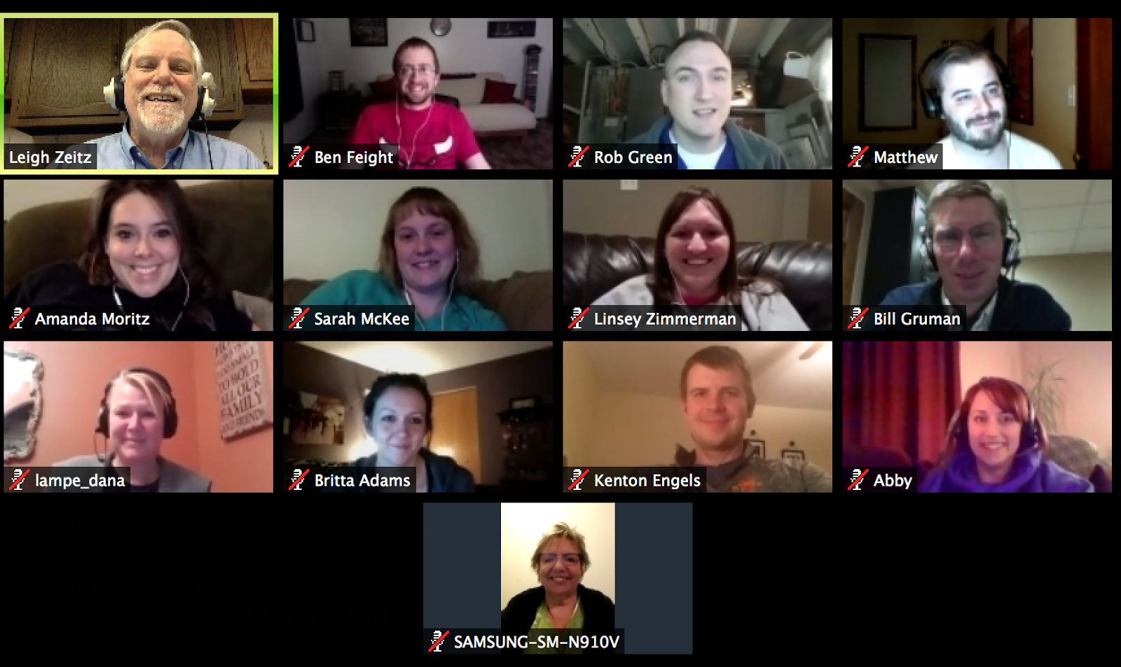 This course is completely asynchronous and we DON’T meet through video conferencing on a regular basis. There are two occasions where I have met with each working group to discuss their progress on larger projects, but those are the only planned video conferencing experiences between the students and me. I am highly recommending that they use Zoom.us or Apple Facetime or Google Hangout to meet online Face-to-Face. They have tried chatting with one another but that doesn’t seem to be too successful. I have provided them with information about how to create their own Zoom Rooms based upon the University’s Zoom.us license, but I will do that at the beginning of the group work next time.