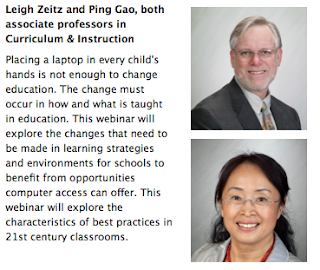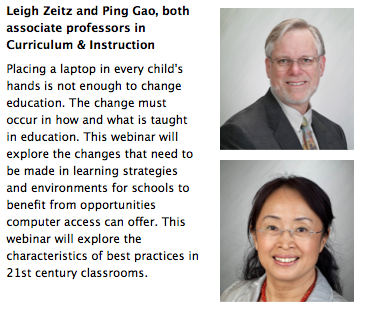 Dr. Ping Gao and I will have an opportunity to share our ideas about Curriculum for the 21st Century with you in a Webinar that we will be giving on April 26, 2012 at 4:00 CST.