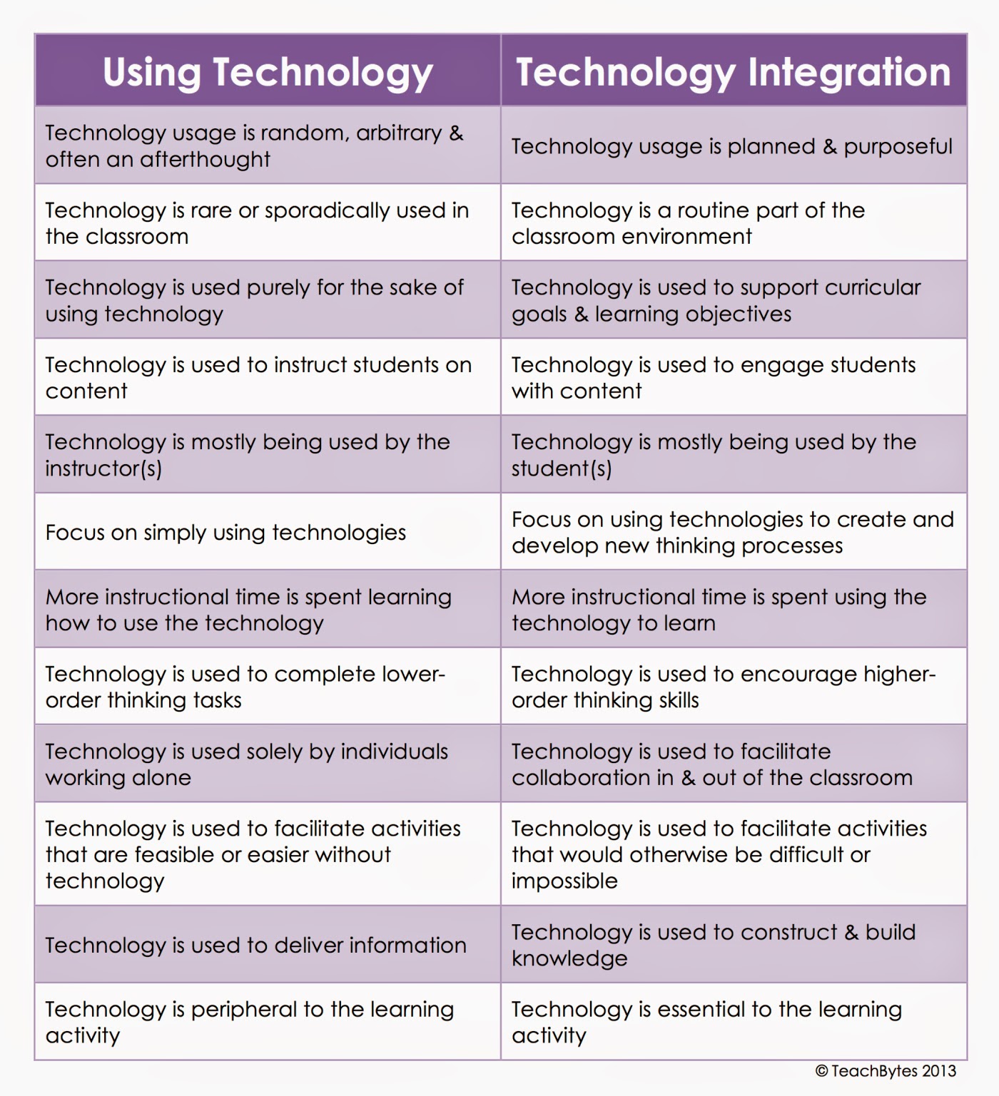 JUST IN: As I was writing this, I discovered another relevant graphic on FaceBook (yes, sometimes I veer off into FaceBook when I am looking for inspiration 😉 This is another graphic that fits the role of identifying how we want students to use technology.  In this case, I would say that the Wrong column includes Adoption and Adaptation in the TIM matrix and the Right answers may fit in the Infusion and Transformation columns with some of them not even fitting on the matrix but including things that we want to see in education, (i.e., Start Conversations.)  What do you think?